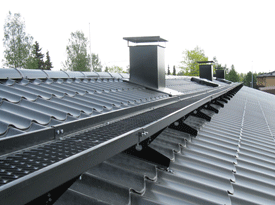 Kattosilta asennetaan katolle turvaamaan harjan suuntaista kulkua piipuille ym. huollettaville kohteille.